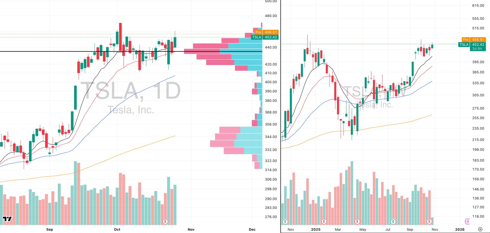 TSLA VRVP Daily & Weekly Chart