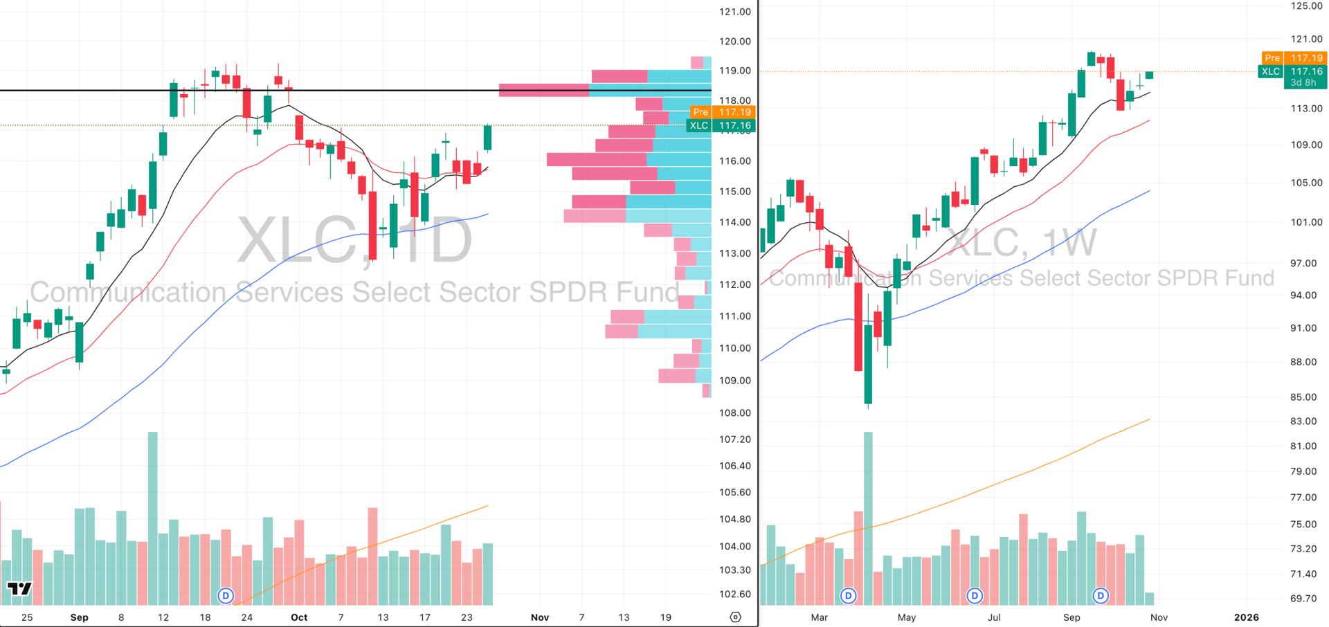 XLC VRVP Daily & Weekly Chart