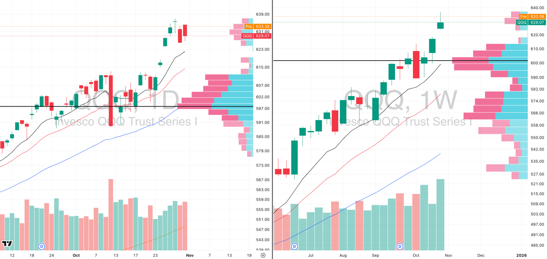 QQQ VRVP Daily & Weekly Chart