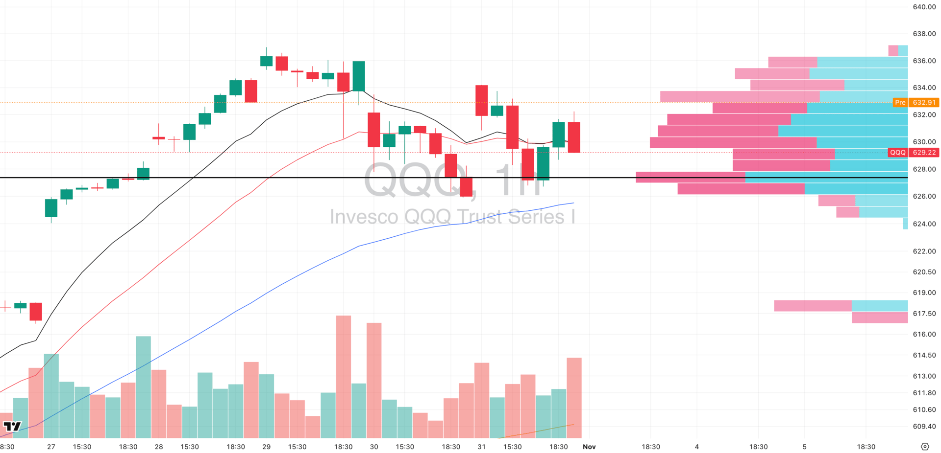 QQQ VRVP Hourly Chart