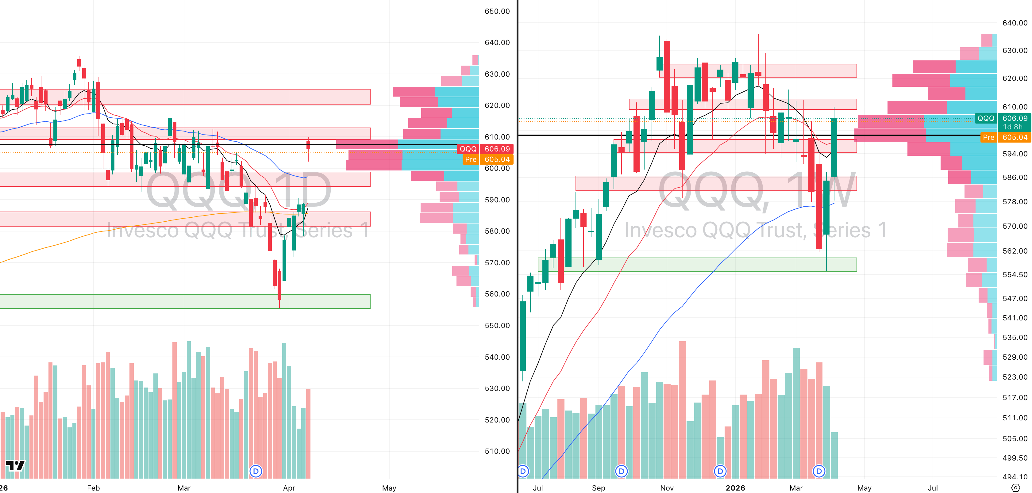 That is why we continue to view this gap as fragile and from our perspective, the area below current price down toward $590 remains vulnerable, and the setup increasingly resembles a potential gap-fill short rather than a clean breakout continuation.