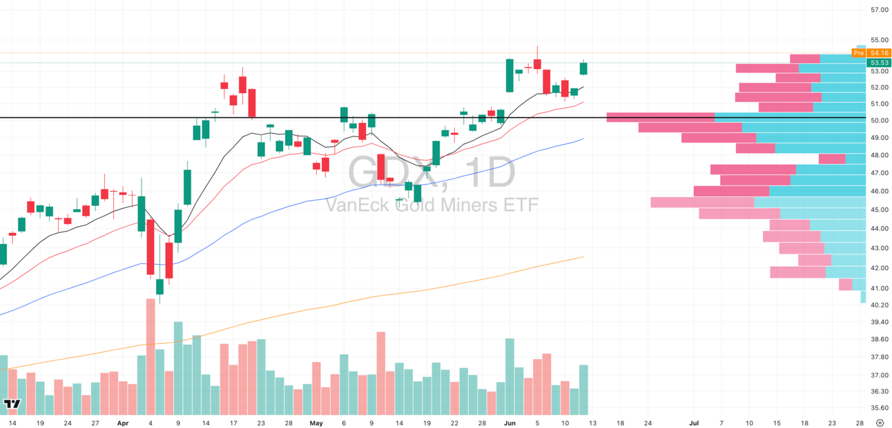 GDX broke out yesterday but initially struggled to hold above the $55 resistance zone. However, we’re seeing early signs of follow-through today — and this could be the start of a new leadership phase for the group.