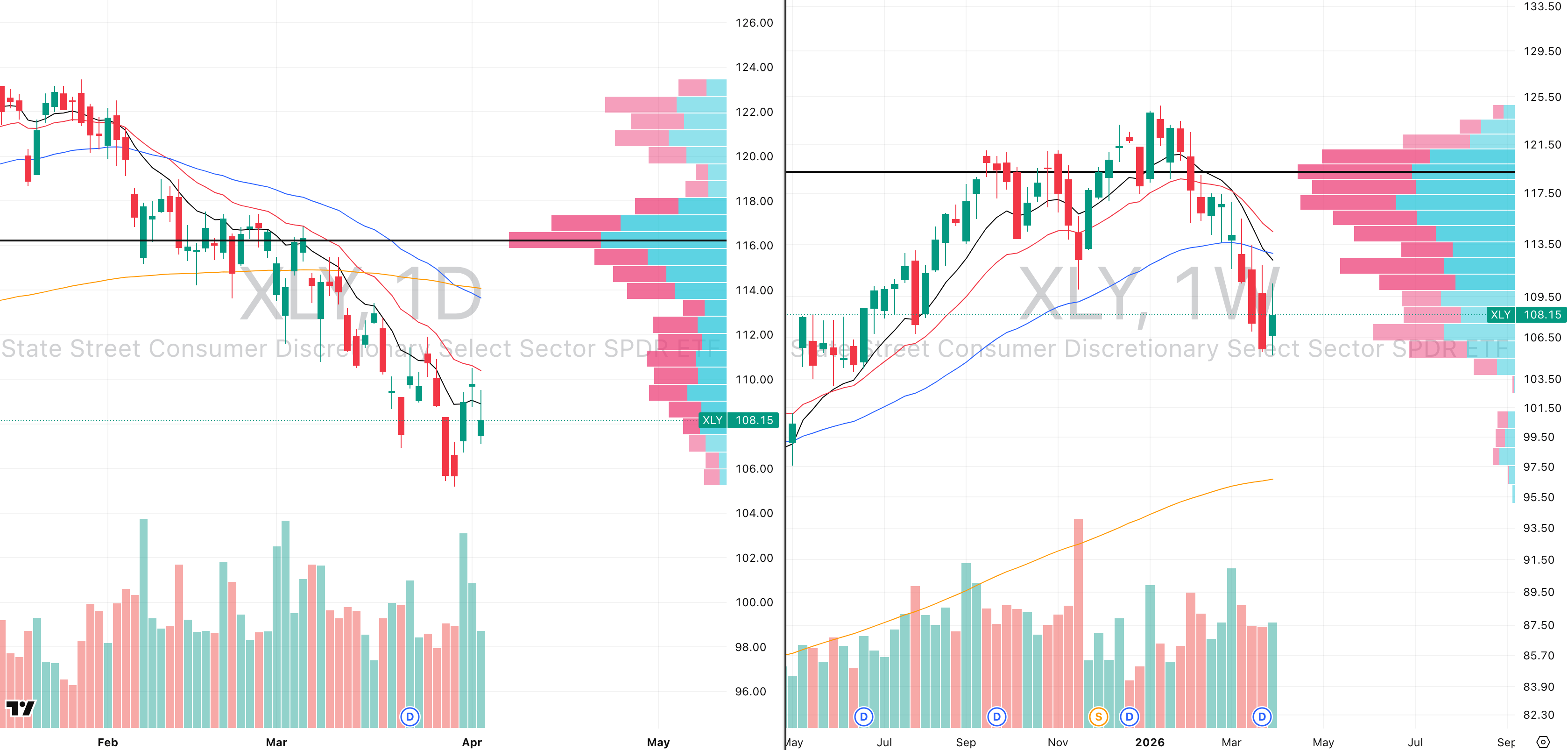XLY VRVP Daily & Weekly Chart