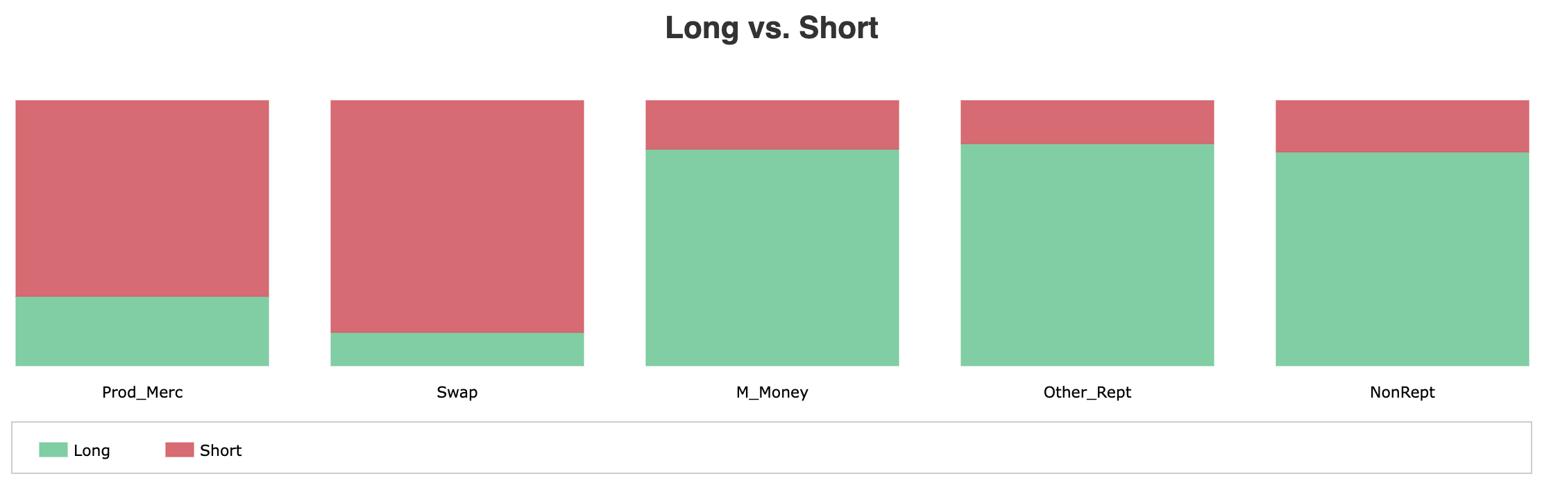 Swap Dealers added both longs and shorts modestly — essentially neutral with a slight short lean. Their 31.9% net short remains the structural ceiling for crude prices.