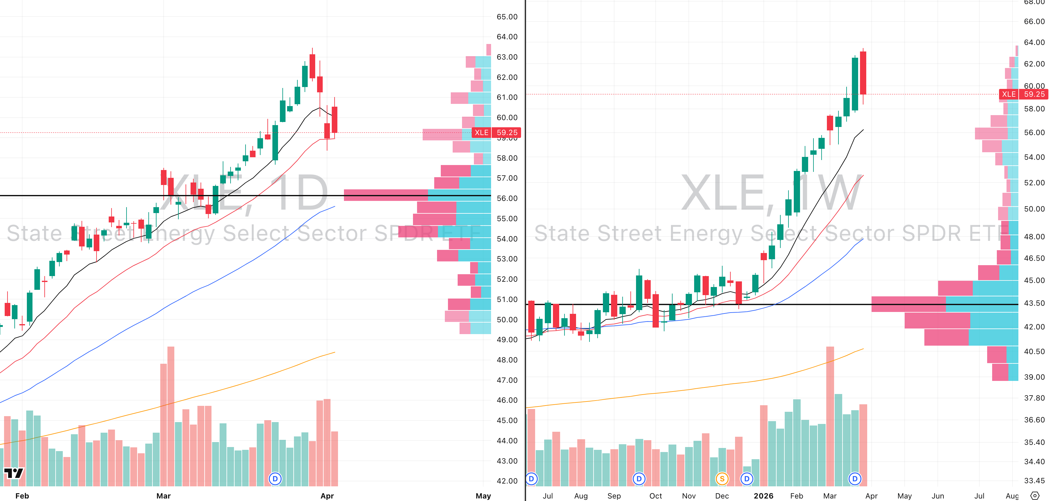 XLE VRVP Daily & Weekly Chart
