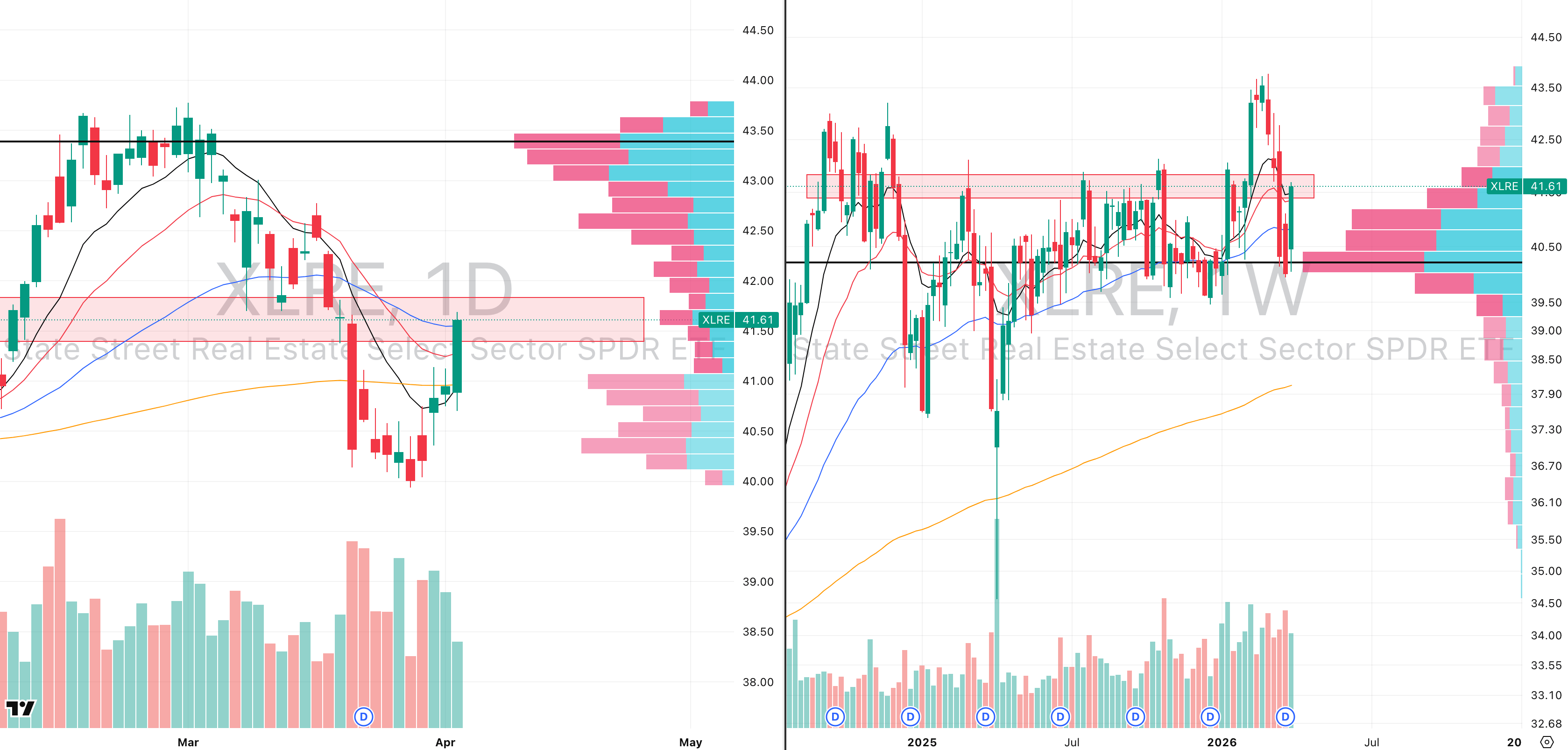 XLRE VRVP Daily & Weekly Chart