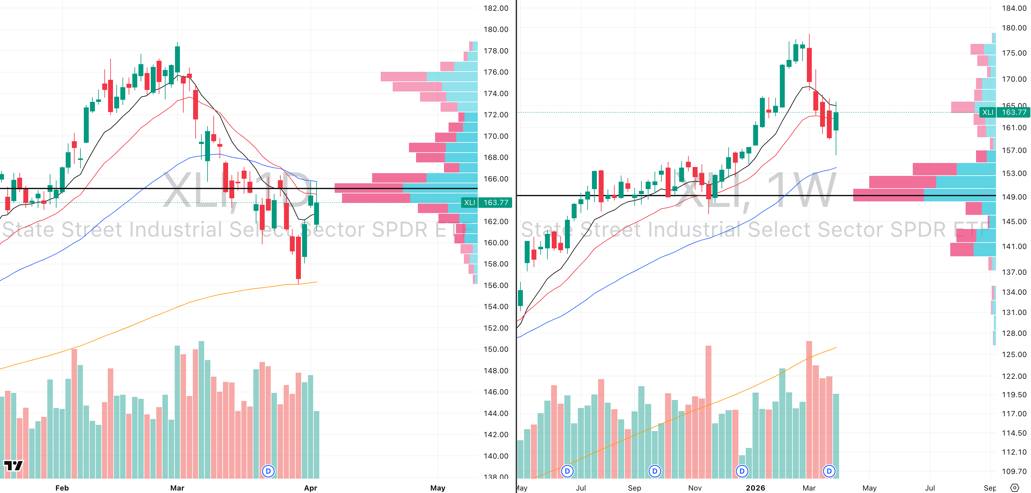 XLI VRVP Daily & Weekly Chart
