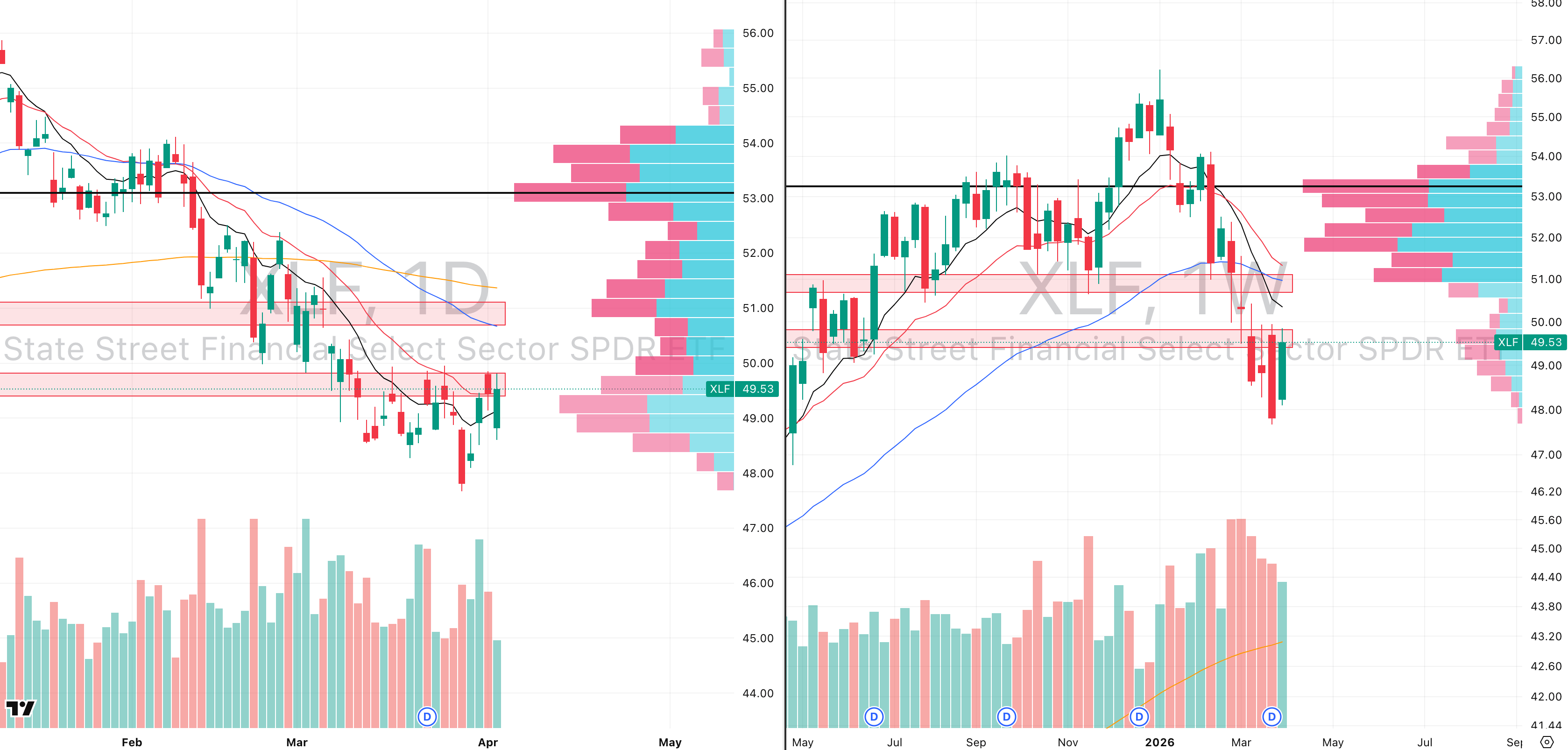 XLF VRVP Daily & Weekly Chart