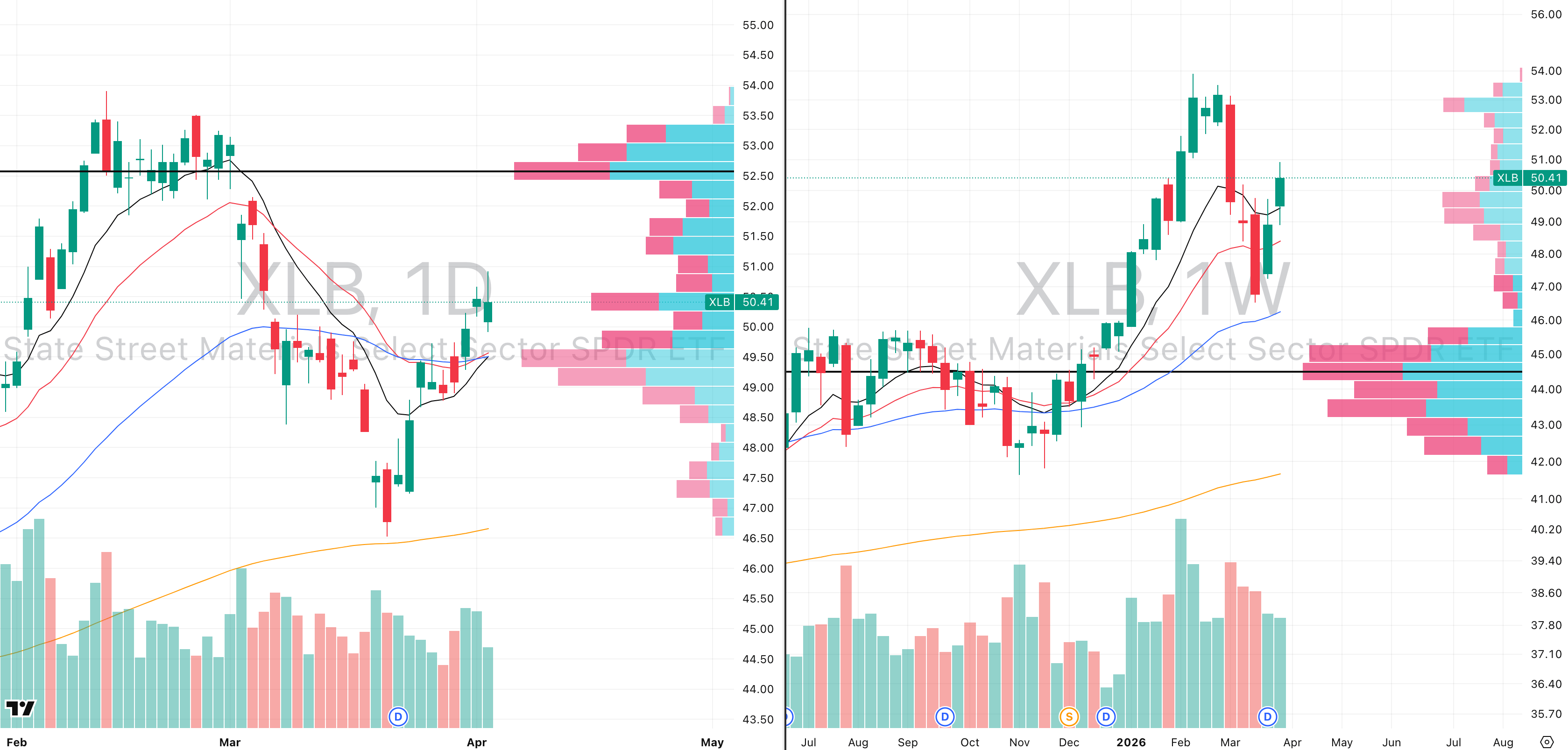 XLB VRVP Daily & Weekly Chart