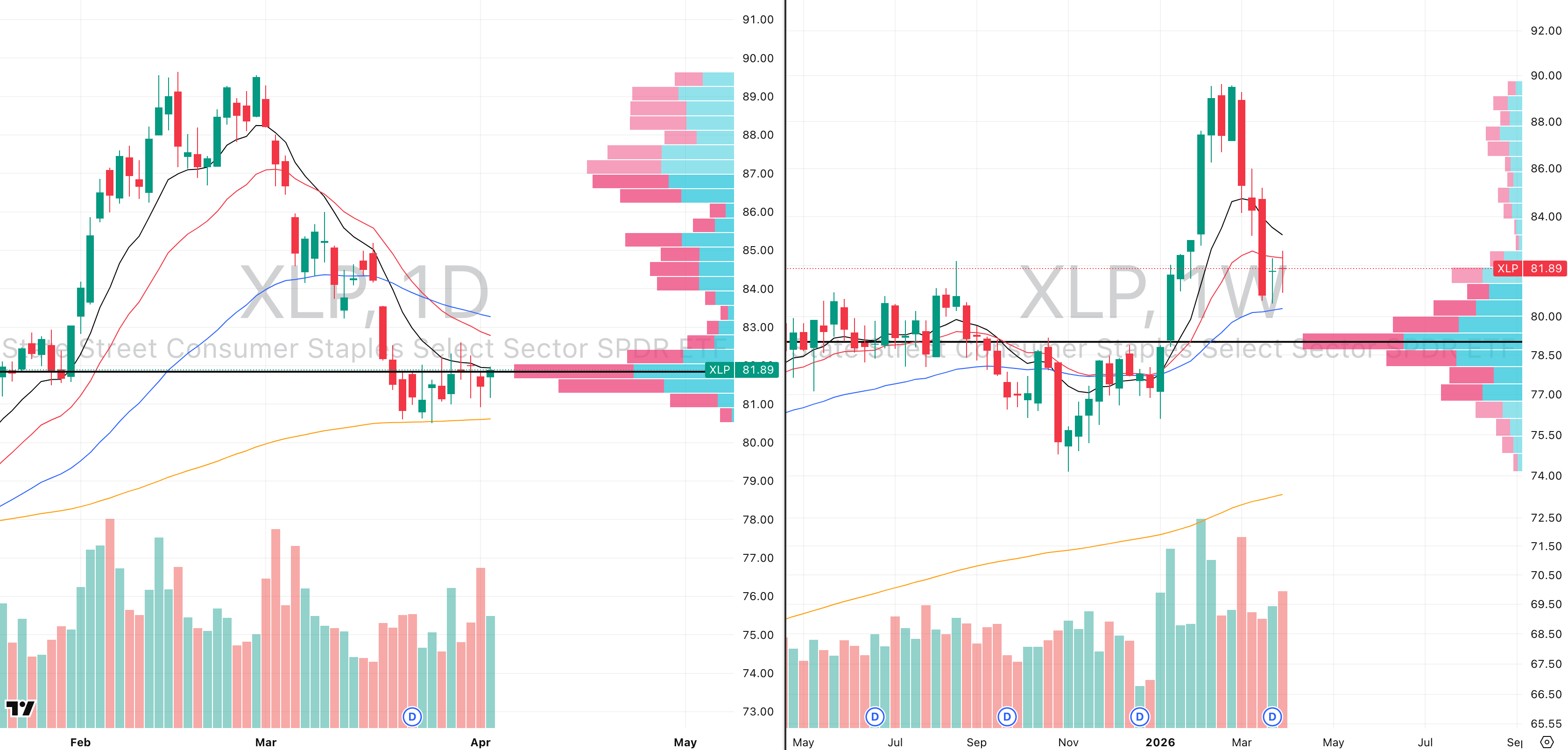 XLP VRVP Daily & Weekly Chart