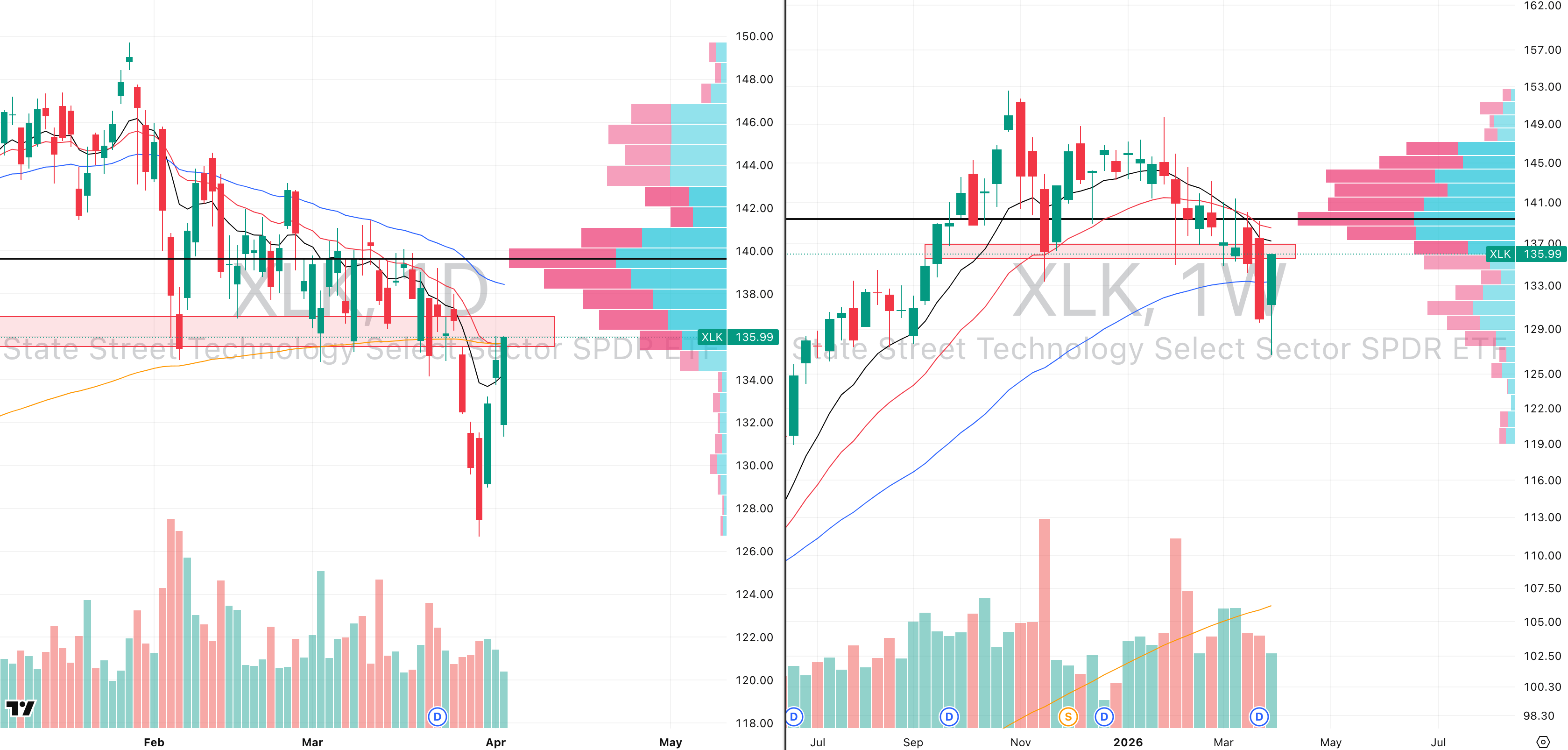 XLK VRVP Daily & Weekly Chart