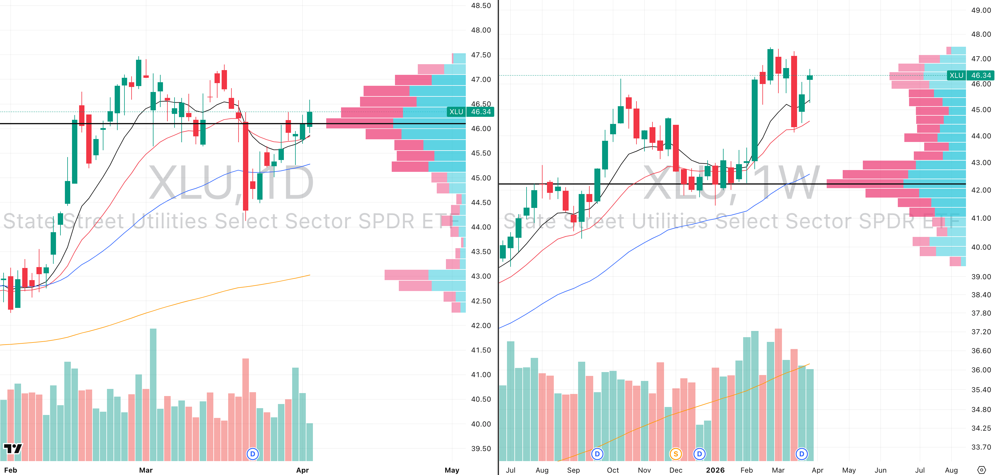 XLU VRVP Daily & Weekly Chart