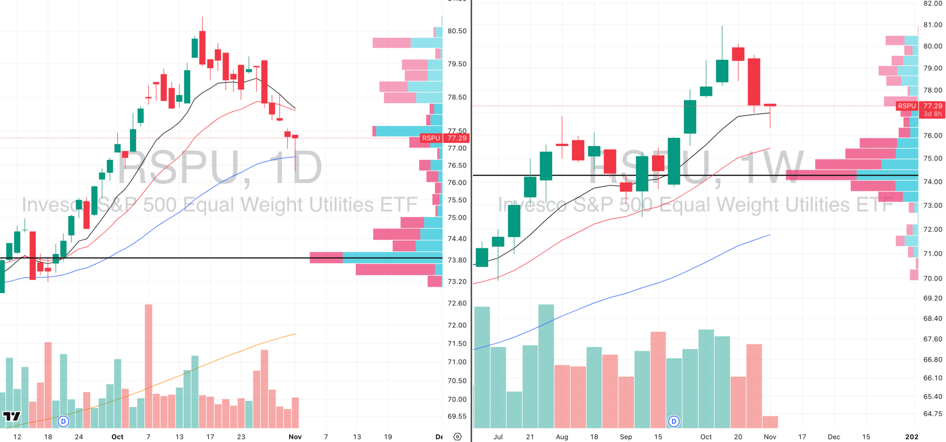 RSPU VRVP Daily & Weekly Chart