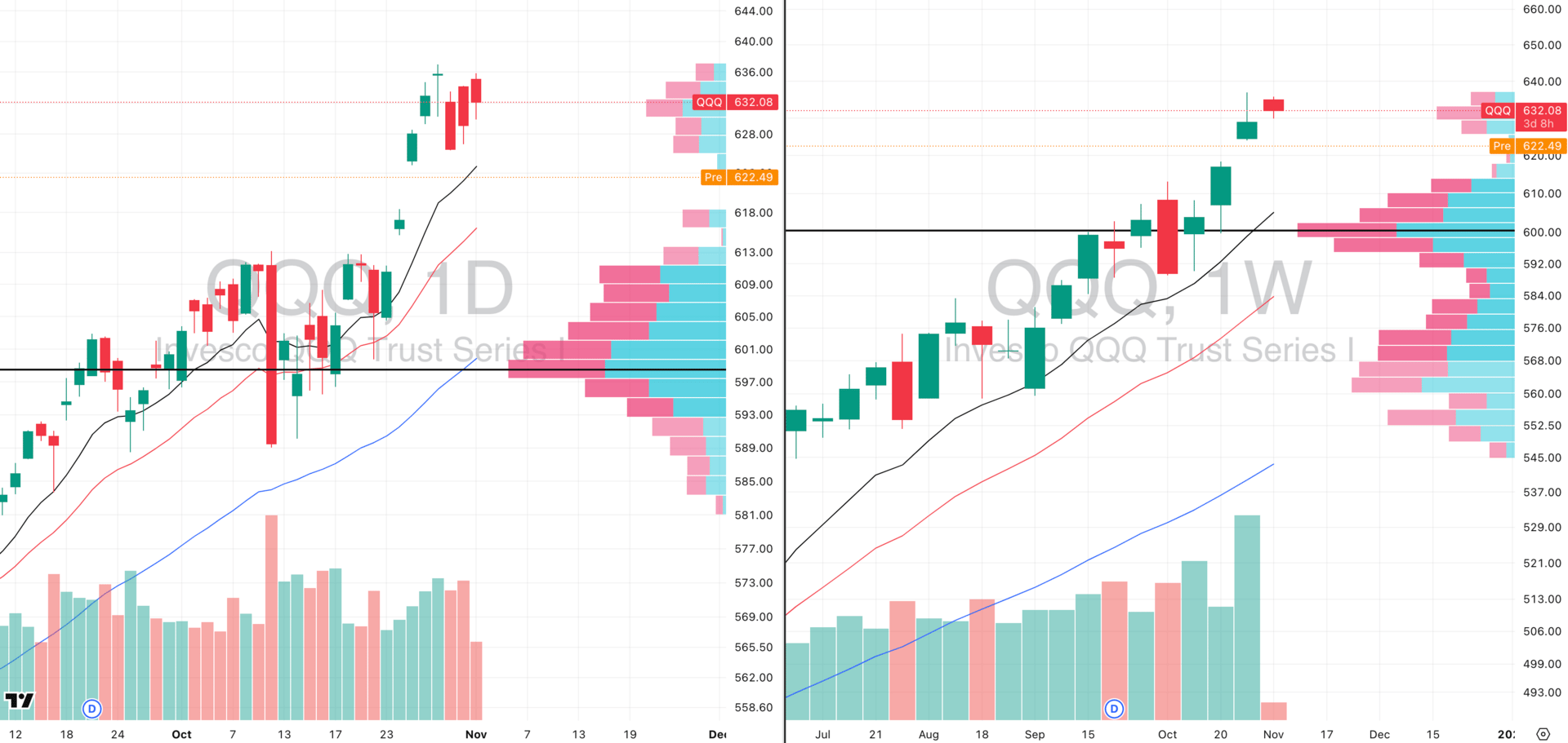QQQ VRVP Daily & Weekly Chart