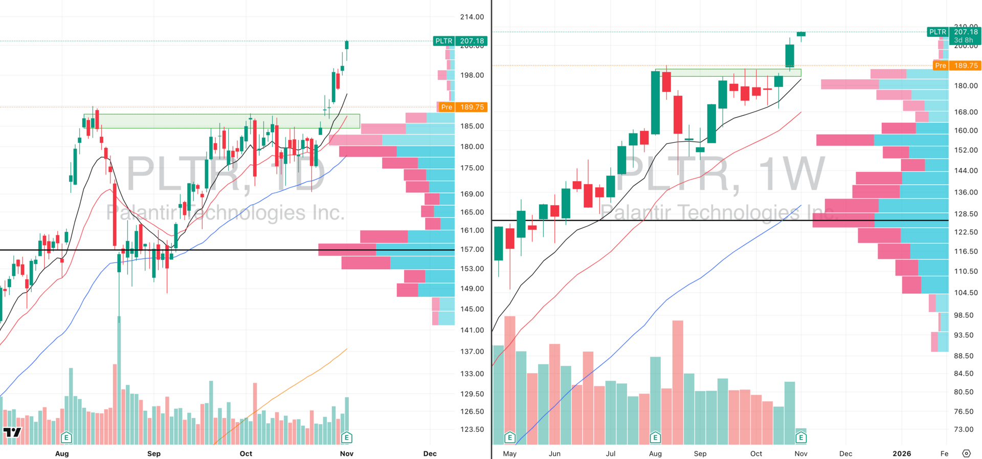 PLTR VRVP Daily & Weekly Chart