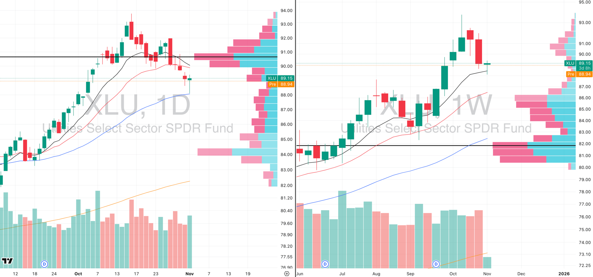 XLU VRVP Daily & Weekly Chart