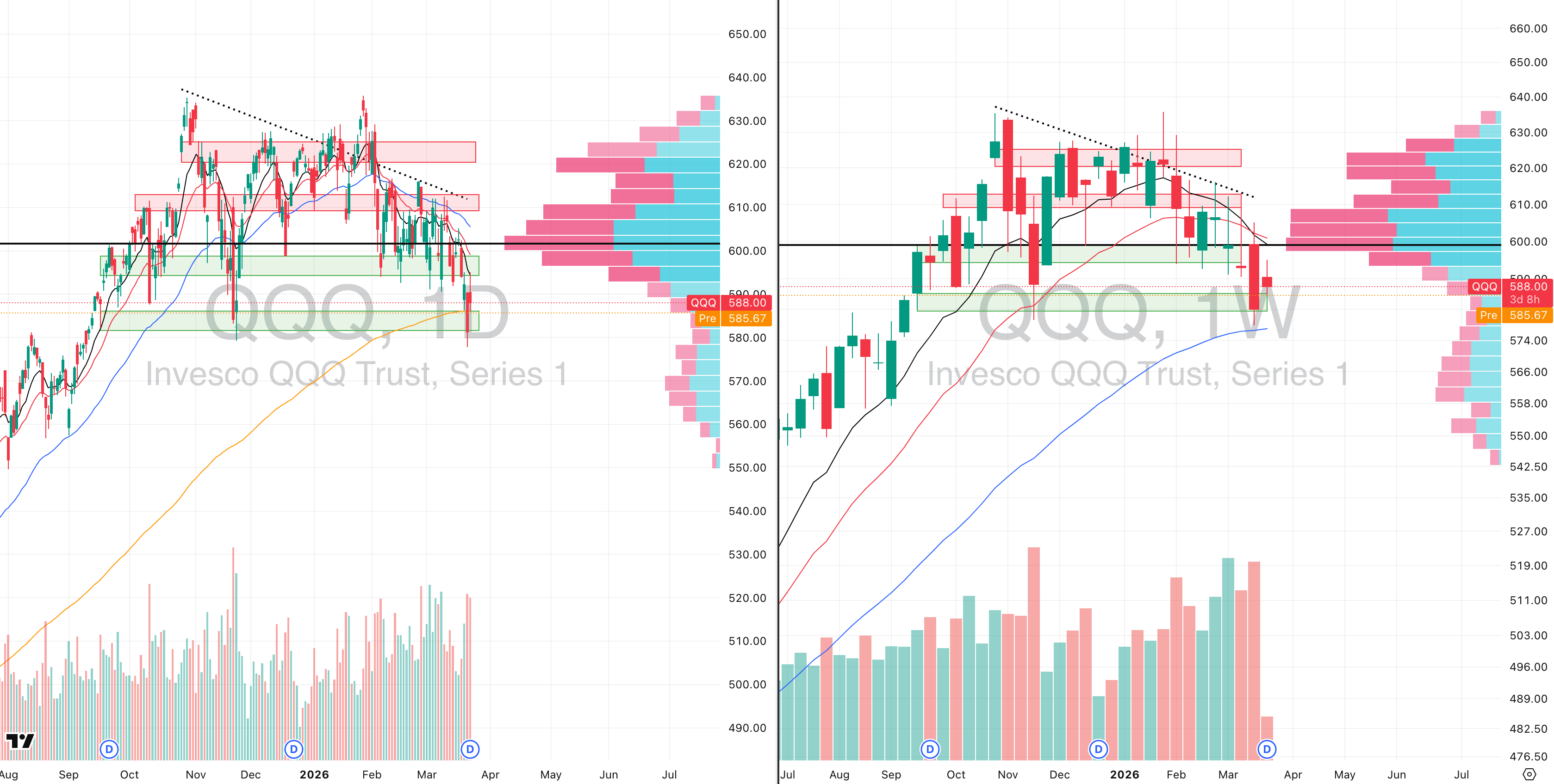 QQQ VRVP Daily & Weekly Chart