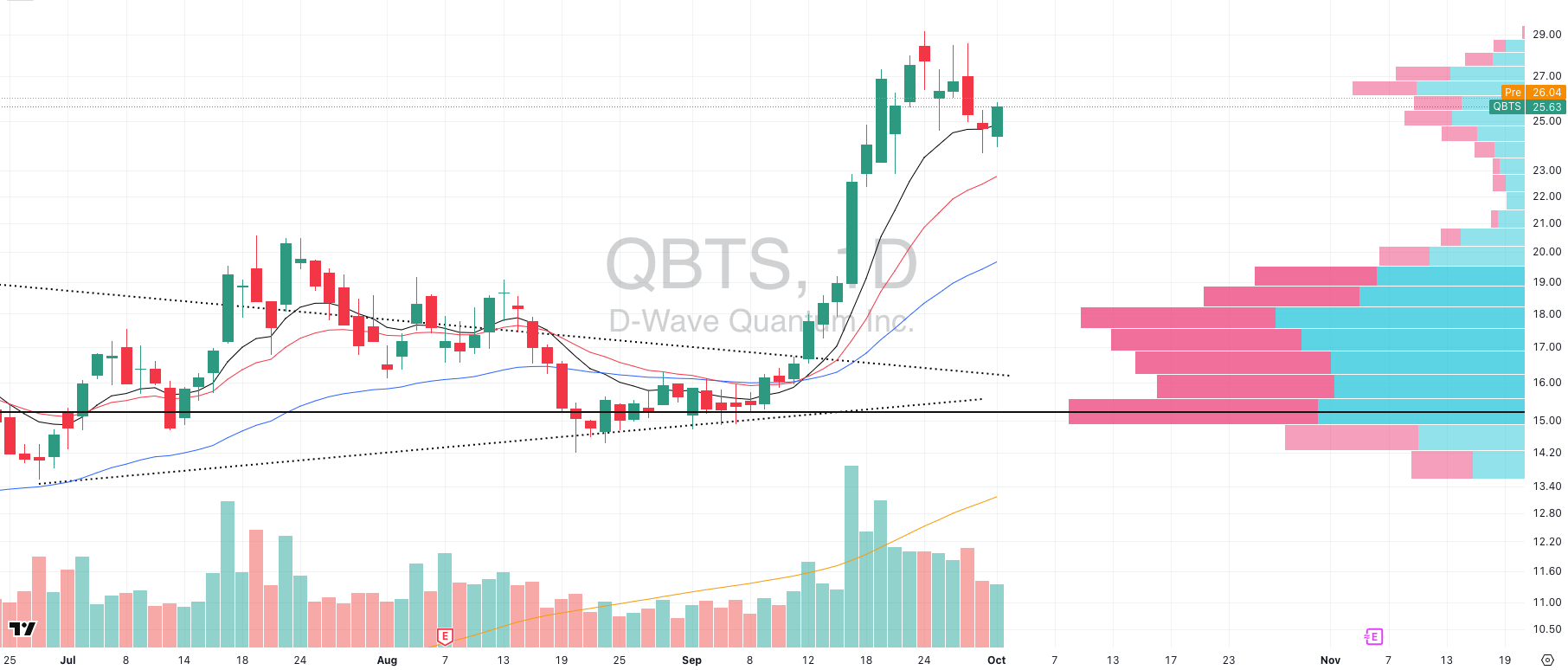 The leading individual quantum names being QBTS, IONQ, and RGTI, all look nearly identical: