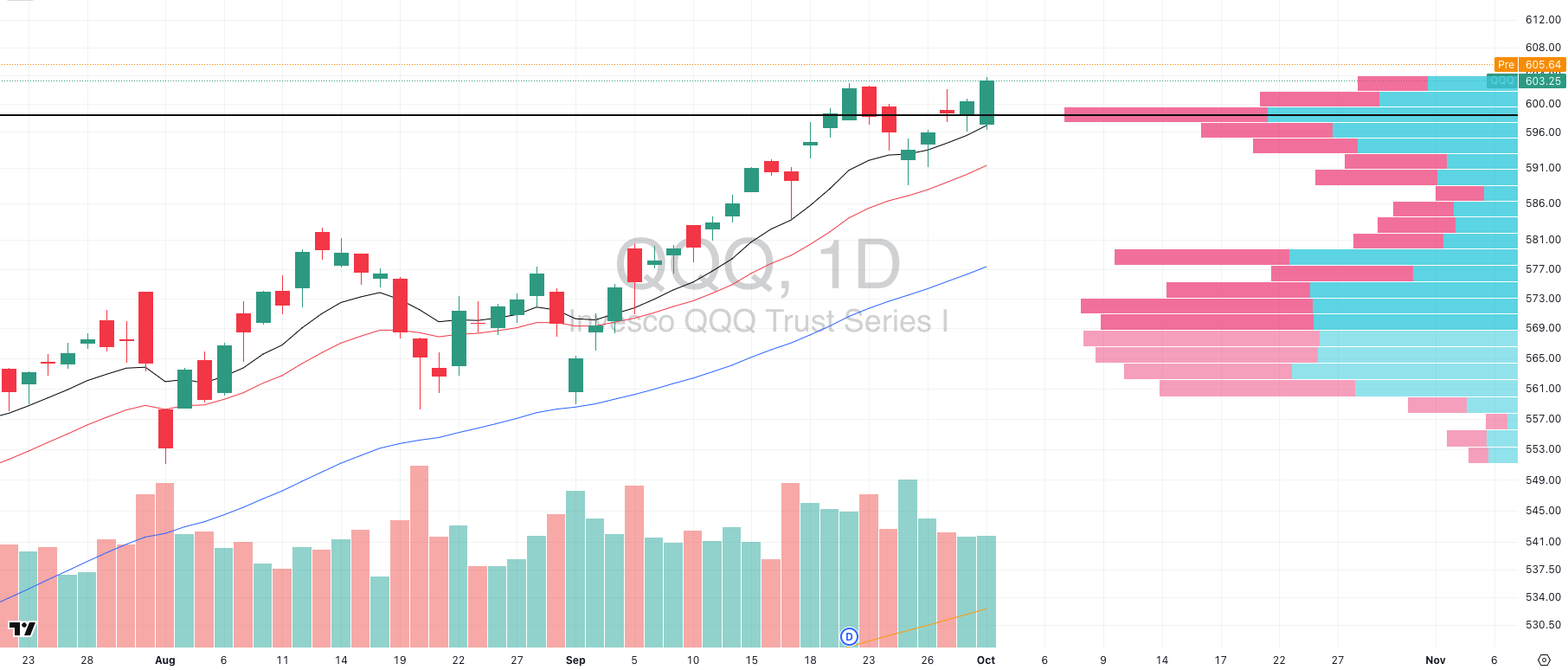 We got exactly what we outlined yesterday: the bulls needed QQQ to push through and take out all-time highs and hold right on its Point of Control (POC).