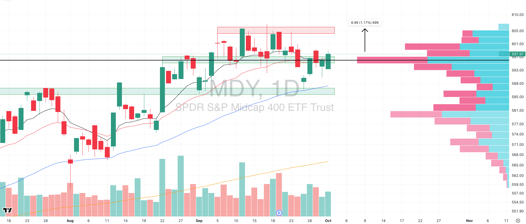 MDY is setting up a measured move of roughly +1.2% into its next key supply zone around $606, and that move looks increasingly likely.
