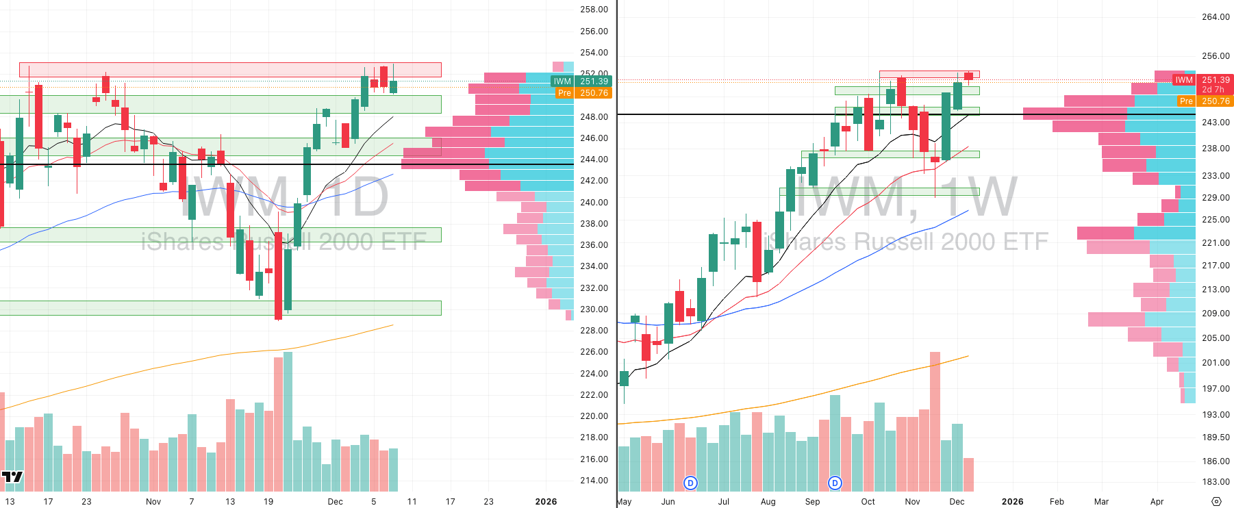 IWM has now held above the 250 demand level for three consecutive sessions, which is an important behavioral signal.