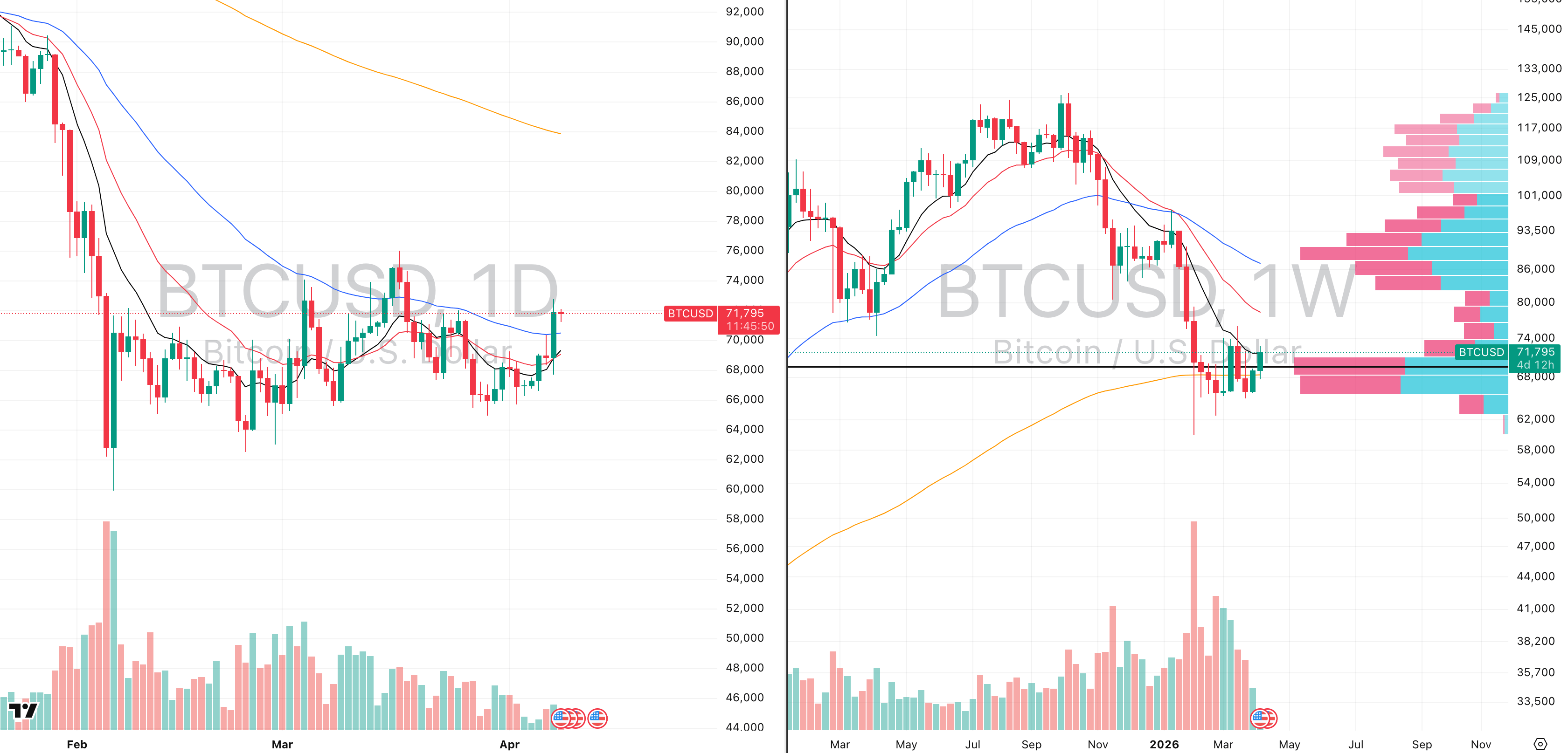 BTCUSD VRVP Daily & Weekly Chart