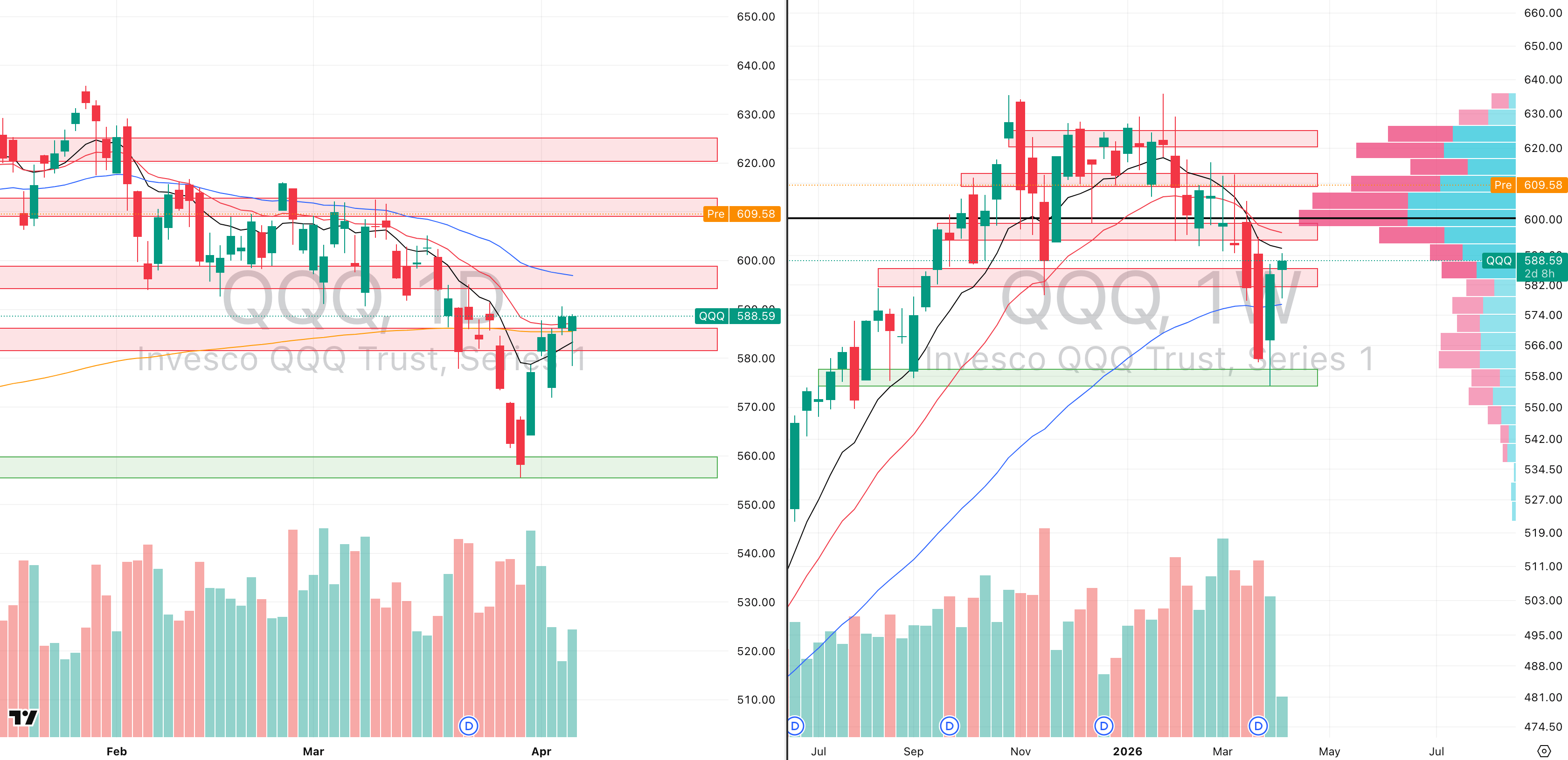 QQQ VRVP Daily & Weekly Chart