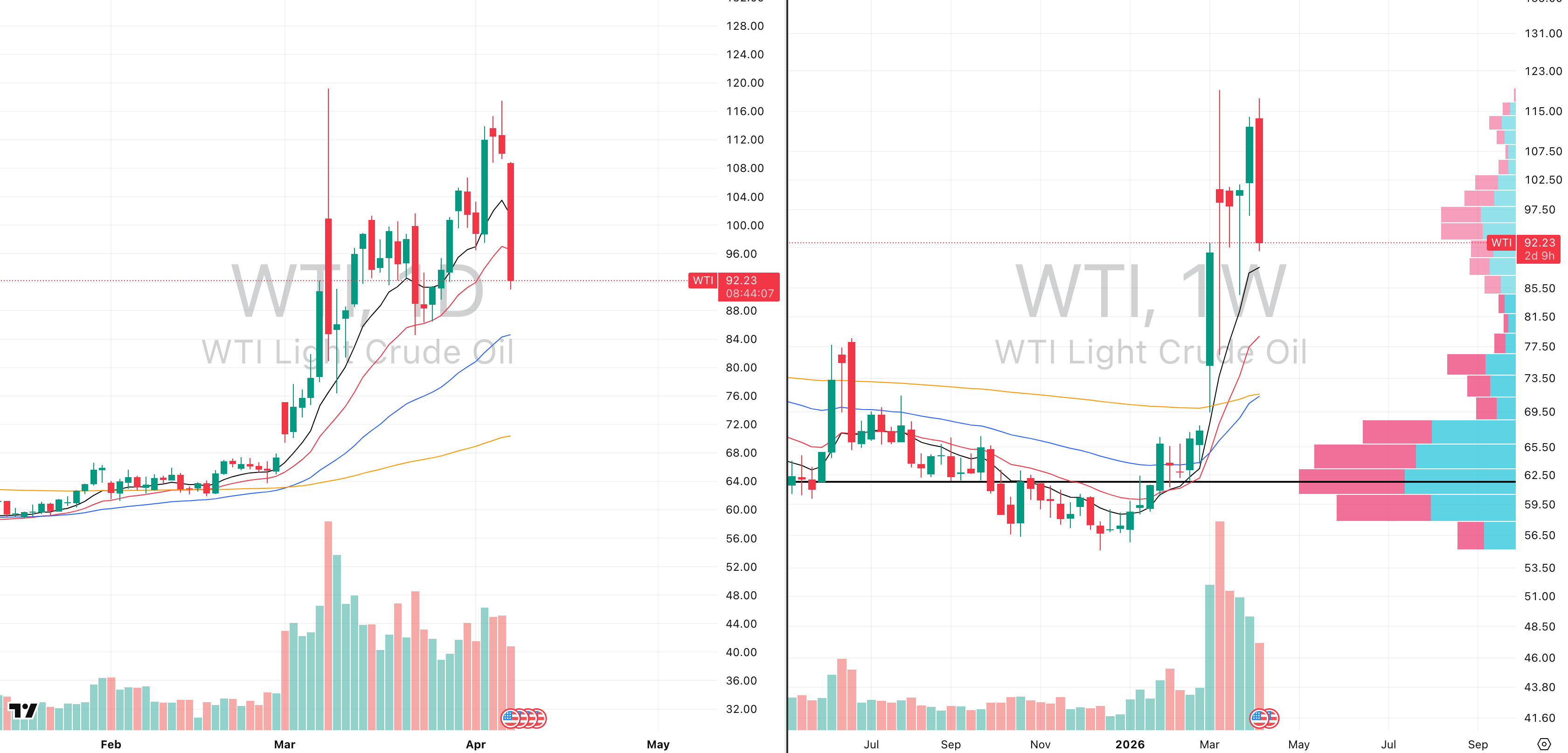 WTI VRVP Daily & Weekly Chart