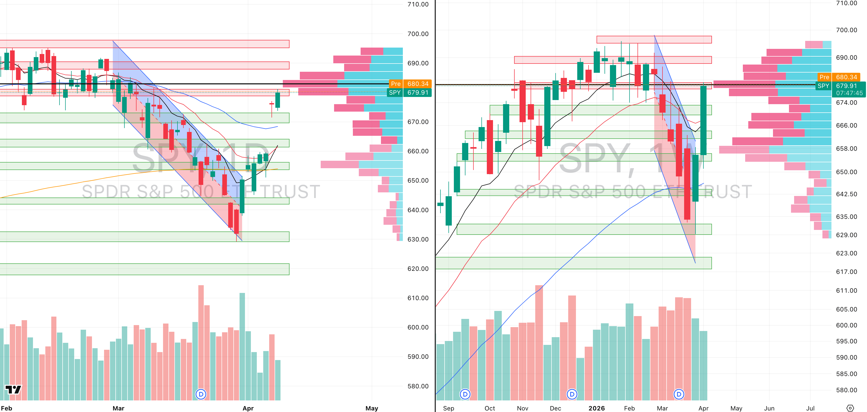 Structurally, all the clean entries that existed in this move were the pullback longs off the 20-month EMA / 50-week EMA zone near $560.