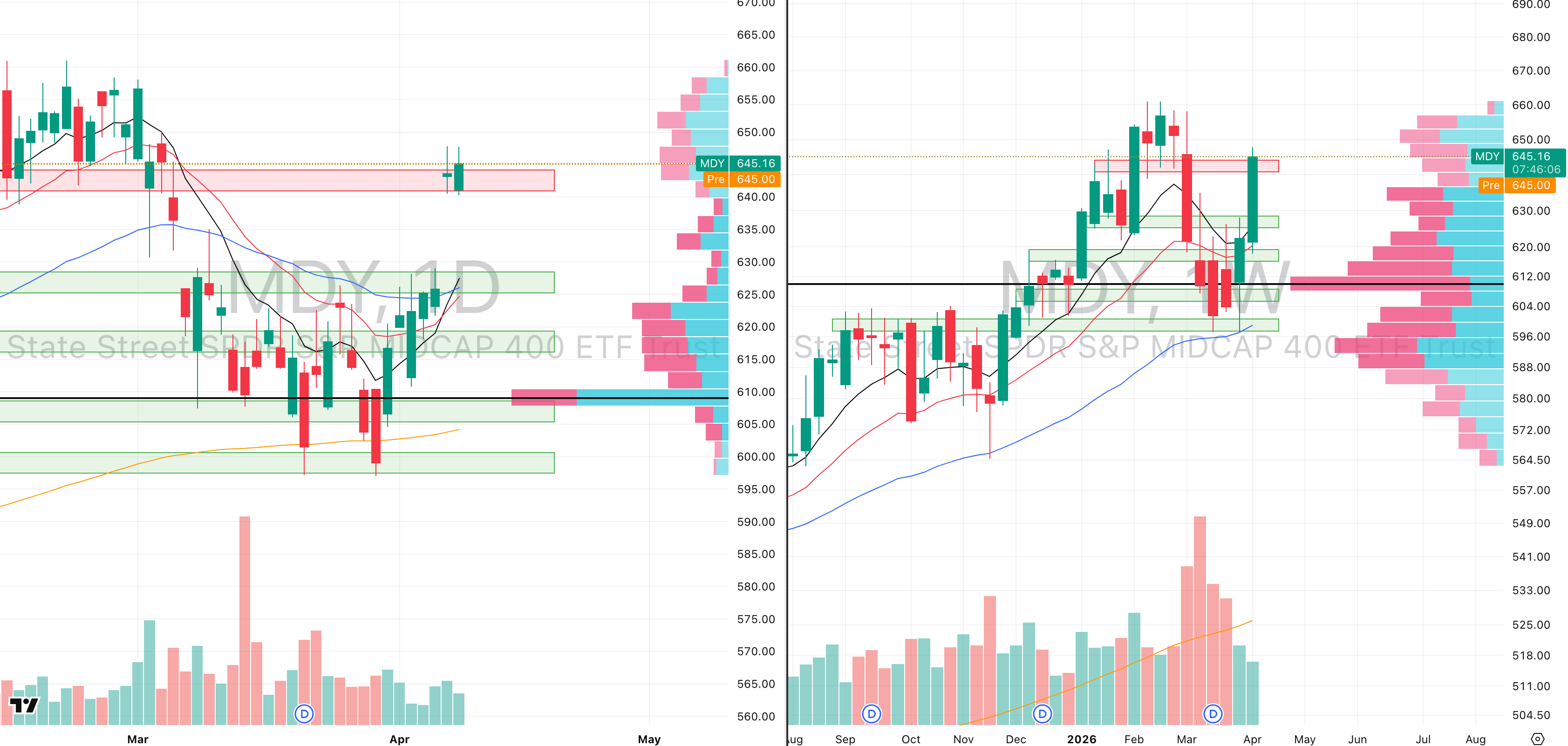 What was especially notable yesterday is that MDY came extremely close to breaking the gap-up lows, yet ultimately held.