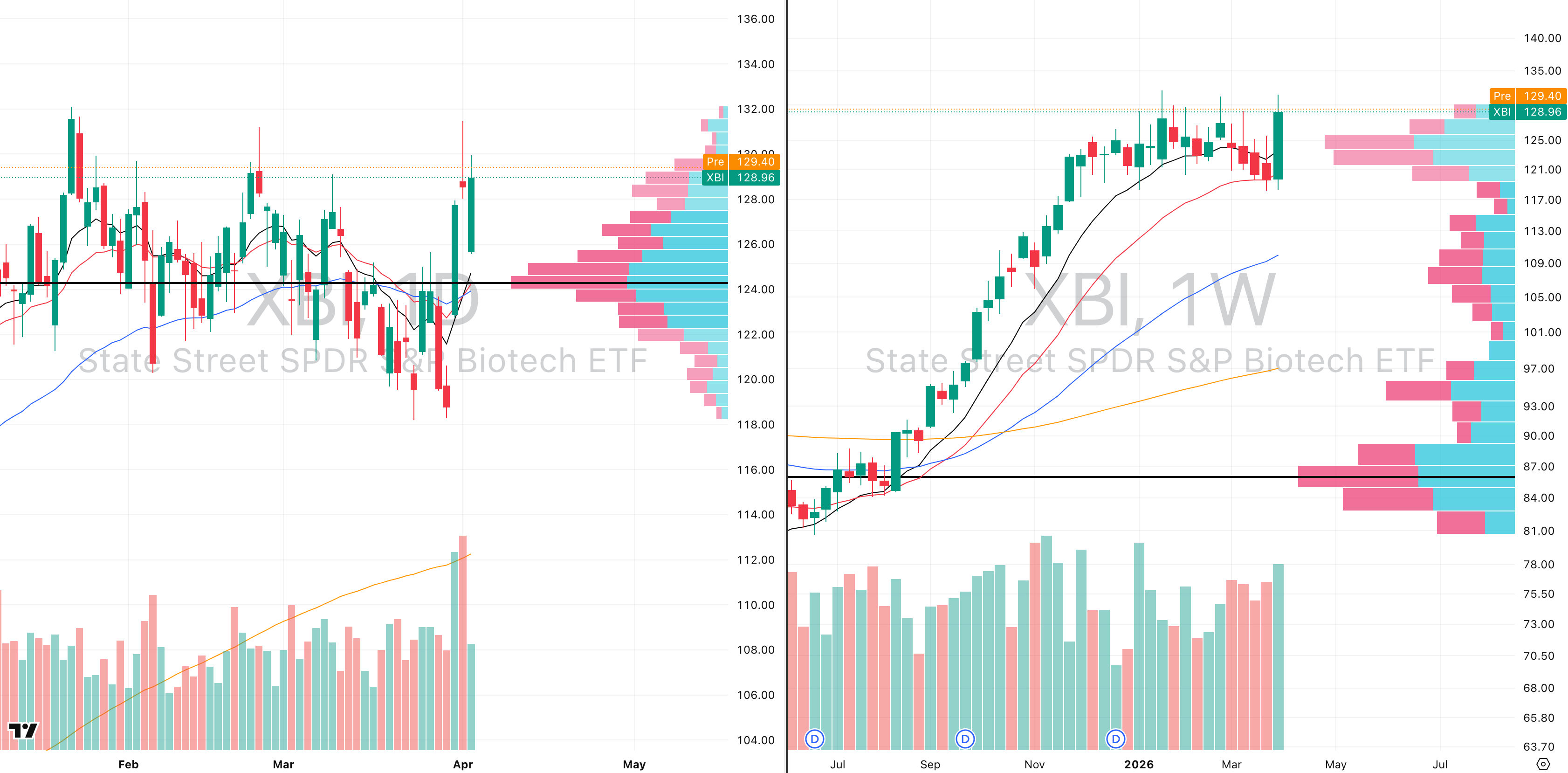XBI VRVP Daily & Weekly Chart