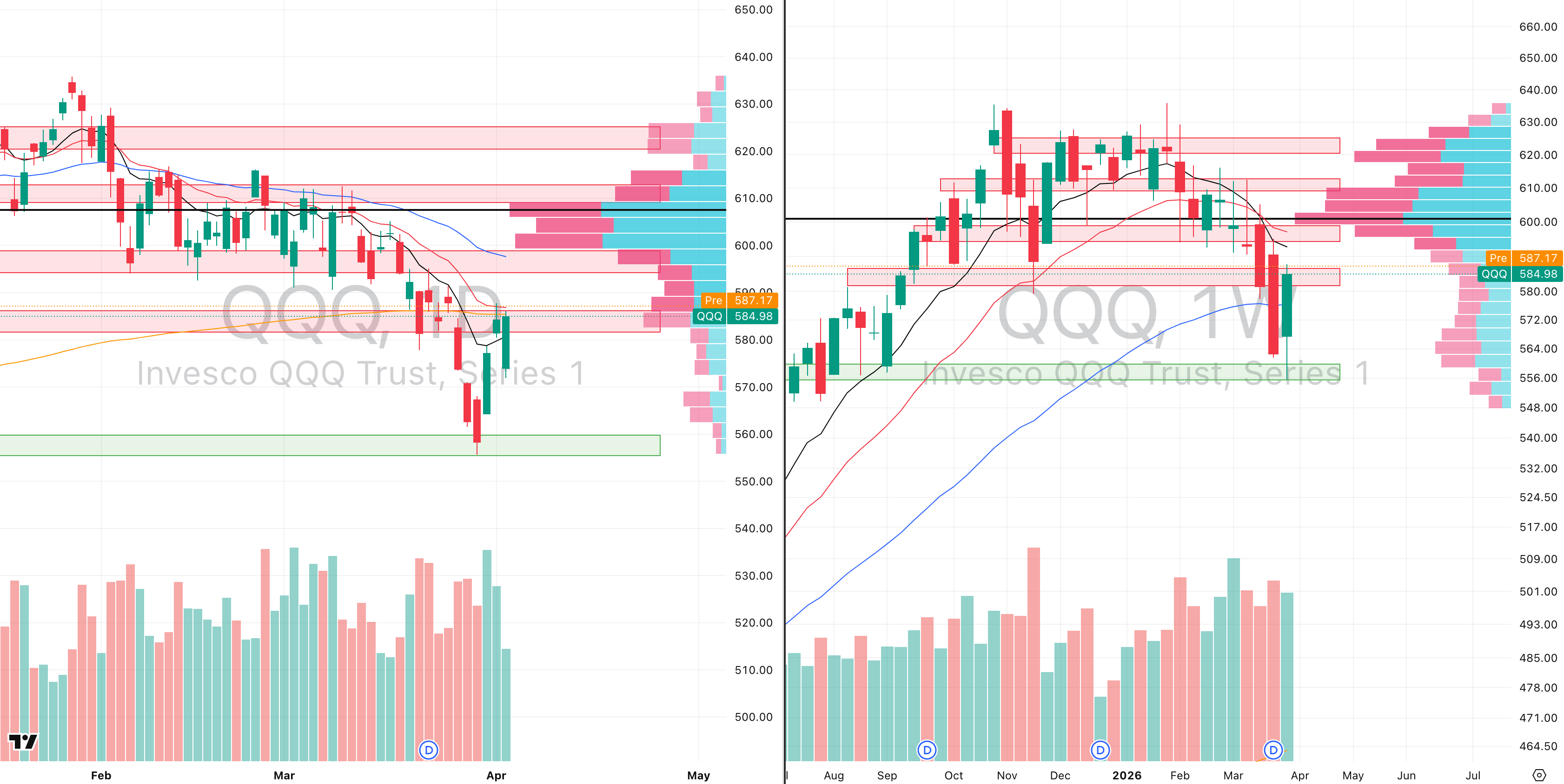 QQQ VRVP Daily & Weekly Chart