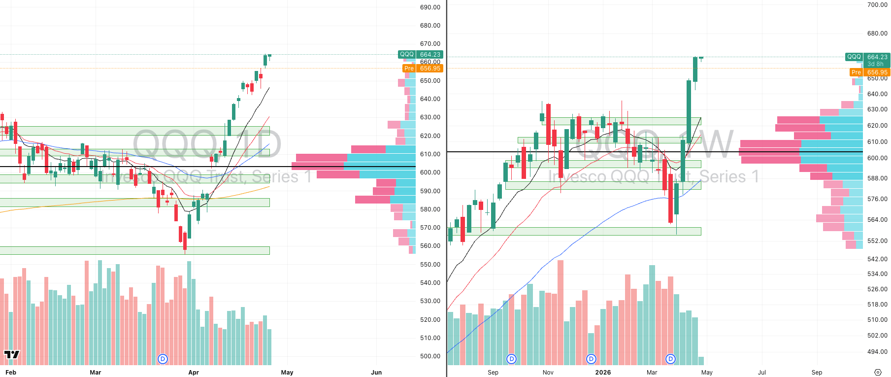 QQQ VRVP Daily & Weekly Chart